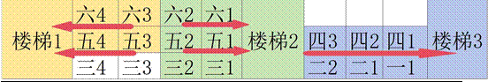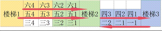 五4、五3走内楼梯,顺序是四1、四2,四3走楼梯3出去。